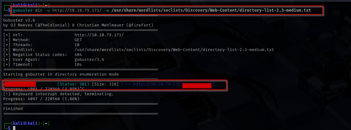 gobuster dir -u http://<ip> -w /usr/share/wordlists/seclists/Discovery/Web-Content/DirBuster-2007_directory-list-2.3-medium.txt