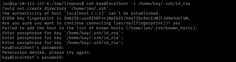 I immediately tried to log in using the key, but alas… it was encrypted with a passphrase.