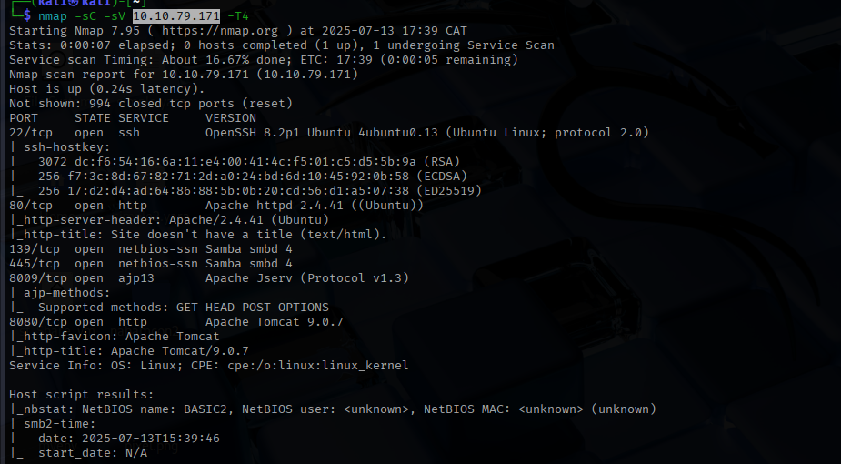 -sC: Uses Nmap’s default script engine (always a good idea).-sV: Probes open ports to determine service and version info.-T4: Speeds up the scan so we aren’t waiting around until our hair turns gray.